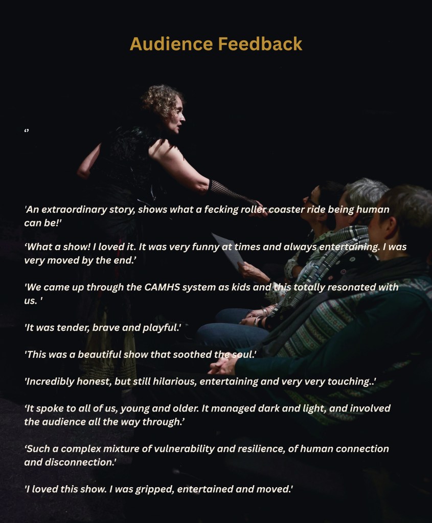MOTHER DARK is a wild yet tender autobiographical solo show exploring motherhood, care and mental health. The show blends storytelling with a stranger-than-fiction true crime – alongside personal myth and magical realism. MOTHER DARK shines a much needed light on systemic failures, the complexities of human connection and our urge to ‘fix’ others.